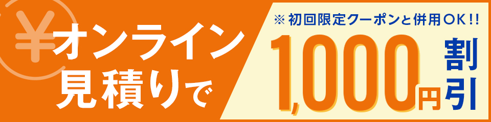 見積もり費用は一切かかりません。オンライン見積もりは1000円引きとなります。